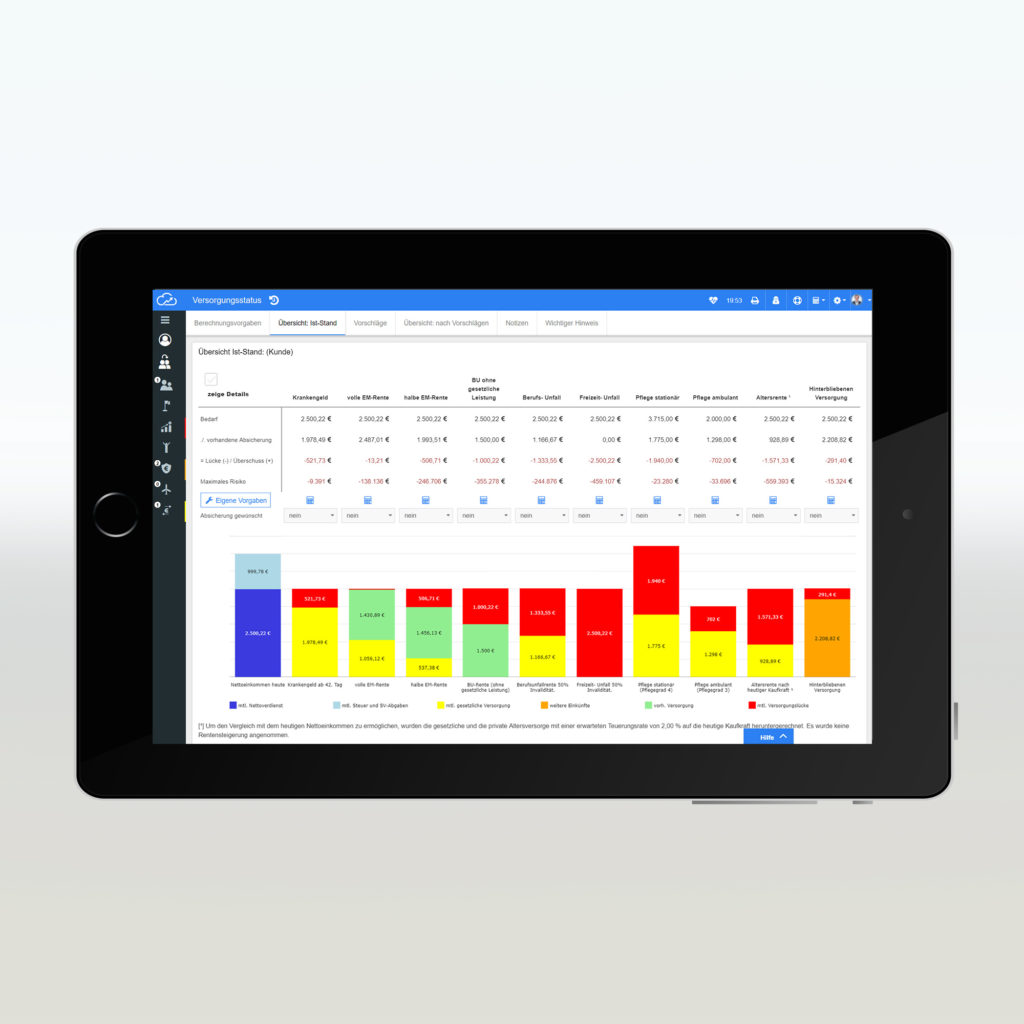 Mit dem Finanzplaner Online alle existenzgefährdenden Versorgungslücken auf einen Blick